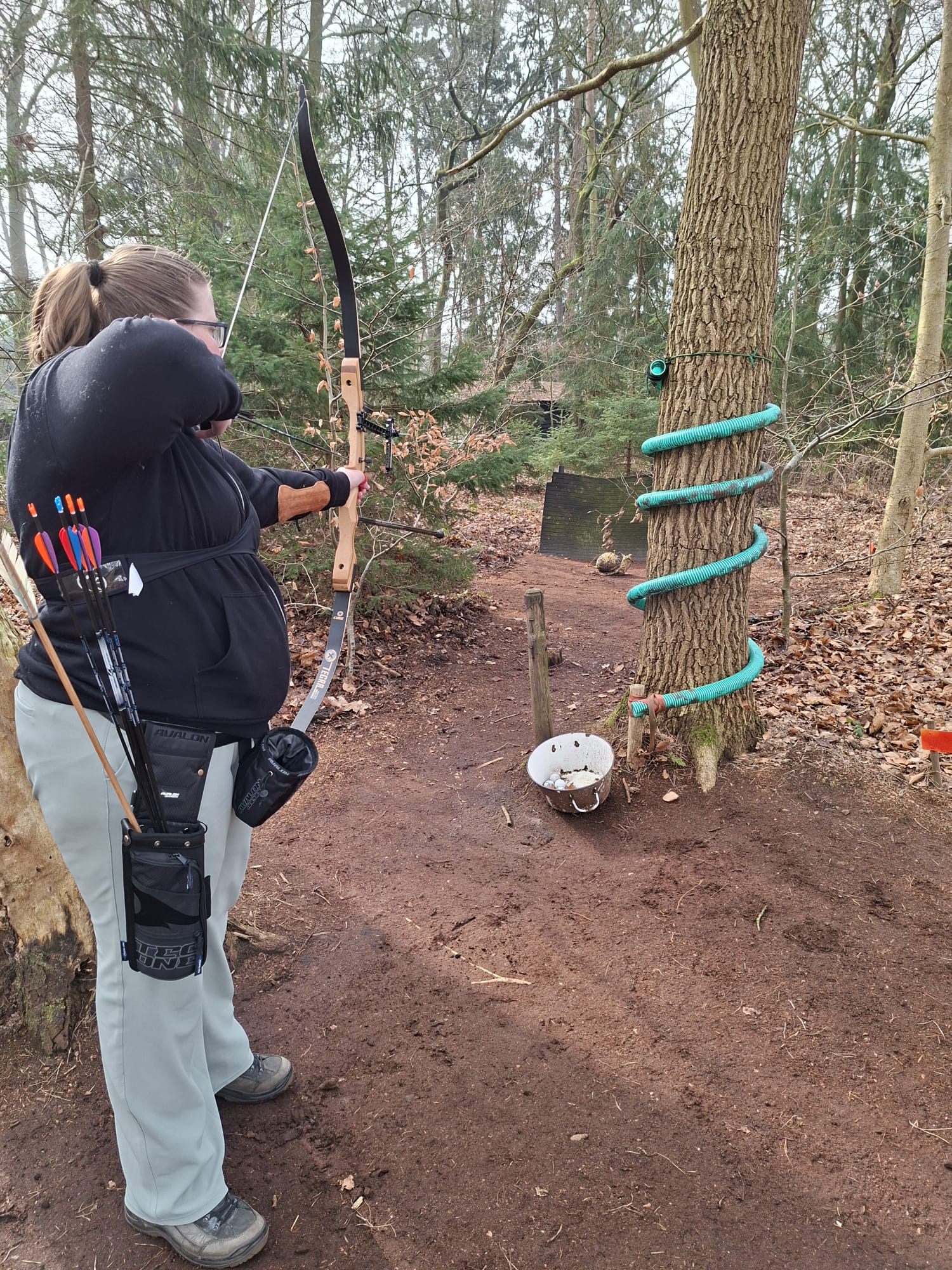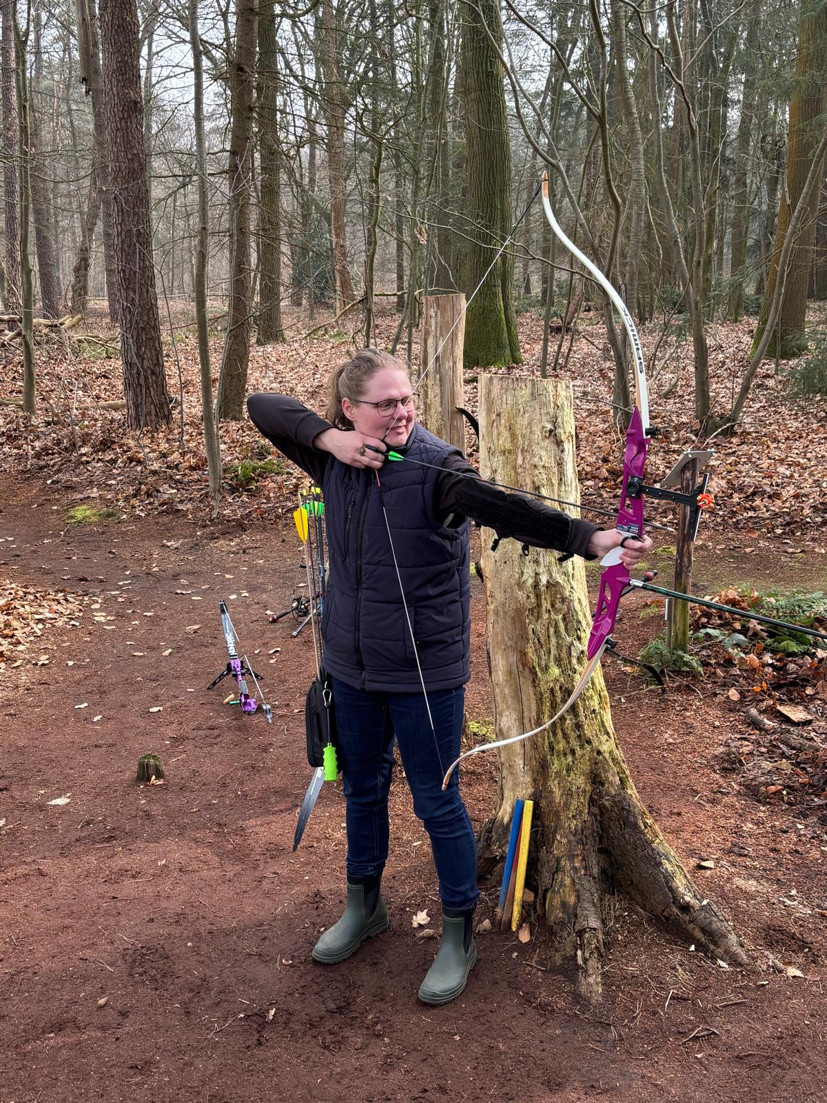 Natuurlijk hoorde daar ook het af en toe zoeken naar pijlen bij, maar ook dat maakt het juist onderdeel van de ervaring. Samen het parcours lopen, elkaar helpen en ondertussen genieten van het schieten én de omgeving zorgde voor een ontspannen en gezellige sfeer. De verschillende afstanden en hoogtes gaven onze nieuwe leden een mooie eerste kennismaking met het 3D-schieten.